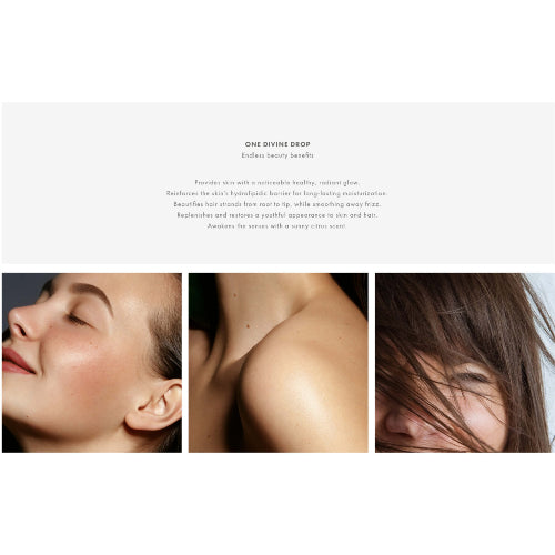 Este aceite seco ofrece un brillo saludable y radiante, reforzando la barrera hidrolipídica para una hidratación duradera. Su fórmula nutre el cabello desde la raíz hasta las puntas, suavizando el encrespamiento para una apariencia pulida. Además, revitaliza y restaura la juventud de la piel y el cabello, mientras despierta los sentidos con un aroma cítrico y soleado que evoca frescura y vitalidad.