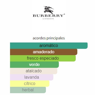 Descubre la clásica fragancia de Burberry Men, una mezcla de notas frescas y amaderadas para hombres apasionados. Con menta, lavanda, bergamota y tomillo en las notas de salida, cedro, sándalo y geranio en el corazón y un final de almizcle, vainilla y ámbar, esta es la esencia del lujo y la elegancia en una botella de 100 ml.