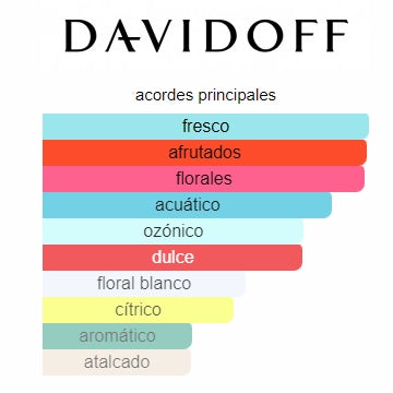Embárcate en el mundo de Cool Water de Davidoff. Esta fragancia Floral Acuática lanzada en 1996, con Pierre Bourdon como la Nariz detrás, es el paraíso para los aventureros: melón, limón ácido, piña, membrillo, calone, azucena, grosellas negras, lirio de agua, muguete, jazmín, miel, flor del espino, rosa, almizcle, vetiver, frambuesa, frambuesa negra, raíz de violeta, durazno, sándalo y vainilla.