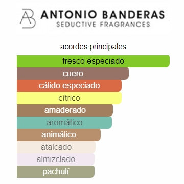 Diavolo de Antonio Banderas es una fragancia de la familia olfativa Ámbar Especiada para Hombres. Diavolo se lanzó en 1997. Diavolo fue creada por Rosendo Mateu y Alain Muraour. Las Notas de Salida son mandarina, bergamota y hojas verdes; las Notas de Corazón son pimienta, geranio y pachulí; las Notas de Fondo son cuero, almizcle y sándalo.