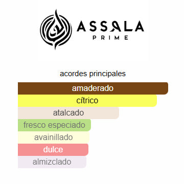 Una fragancia moderna que equilibra frescura y calidez, perfecta para quienes aprecian aromas complejos y duraderos. Fakhama de Assala Prime.