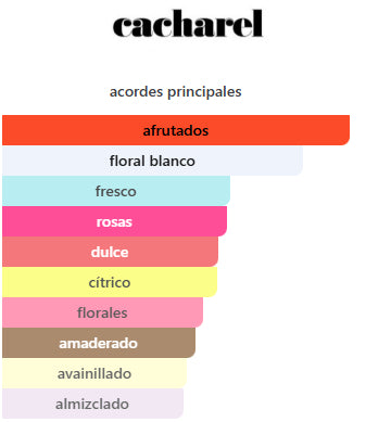 Amor Amor Eau de Parfum de Cacharel es una fragancia floral frutal diseñada para mujeres modernas. Lanzada en 2024 y creada por la reconocida nariz Dora Baghriche, esta composición cautiva con notas de salida frescas de pera, grosellas negras y toronja rosada. El corazón revela una elegante mezcla de rosa roja, lirio de los valles y jazmín, mientras que las notas de fondo ofrecen calidez con vainilla, almizcari blanco y cedro. Una fragancia versátil que combina frescura frutal con sofisticación floral, perfecta para cualquier ocasión.