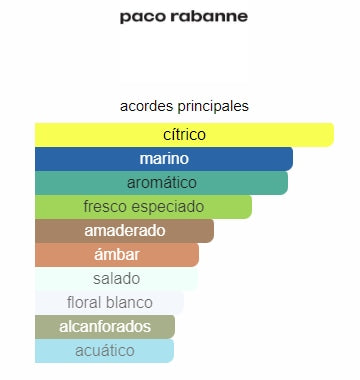 Invictus de Paco Rabanne es una fragancia de la familia olfativa Amaderada Acuática para Hombres. Invictus se lanzó en 2013. Invictus fue creada por Veronique Nyberg, Anne Flipo, Olivier Polge y Dominique Ropion. Las Notas de Salida son notas marinas, toronja (pomelo) y mandarina; las Notas de Corazón son hoja de laurel y jazmín; las Notas de Fondo son ámbar gris, madera de gaiac, musgo de roble y pachulí.