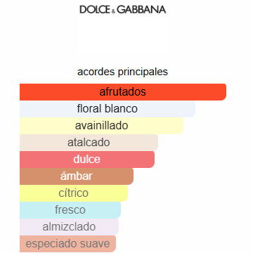 The One de Dolce & Gabbana es una fragancia ámbar floral diseñada para la mujer moderna y sofisticada. Creada en 2006 por la reconocida nariz Christine Nagel, esta composición cautiva desde el primer momento con notas frescas de durazno, lichi, mandarina y bergamota. El corazón revela una delicada mezcla de azucena, ciruela, jazmín y muguete que añade elegancia y profundidad. Las notas de fondo de vainilla, ámbar, almizcal y vetiver proporcionan una base cálida y envolvente que perdura en la piel. Un aroma versátil que transita perfectamente del día a la noche, dejando una estela memorable y refinada.