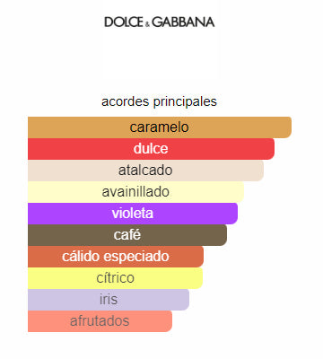 Un aroma perteneciente a la familia olfativa Ámbar Vainilla, The Only One de Dolce&Gabbana fue lanzado en 2018. Las notas iniciales de la fragancia son violeta, naranja y bergamota.entre las notas del corazón, la pera, el café, el iris, la flor de azahar del naranjo y la rosa sobresalen. Finalmente, las notas de fondo son caramelo, vainilla y pachulí.